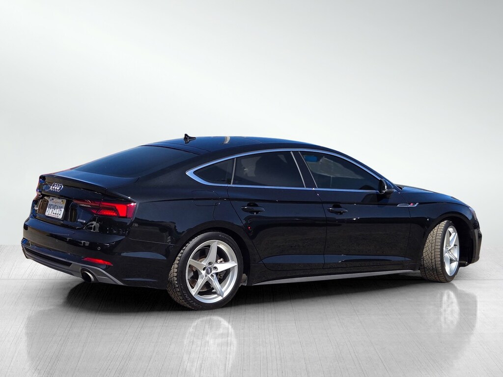 Black Metallic 2019 Audi A5 Sportback Premium Plus quattro quattro 7-Speed Automatic S tronic 2.0L 4-Cylinder TFSI 112 POINT INSPECTION, 10 Speakers, 4-Wheel Disc Brakes, ABS brakes, Air Conditioning, Alarm System w/Motion Sensors, All Weather Floor Mats, Alloy wheels, Aluminum Trimaran Inlays, AM/FM radio, Anti-whiplash front head restraints, Audi Advanced Key, Audi MMI Navigation Plus w/MMI Touch, Audi pre sense rear, Audi Side Assist, Auto-Dimming Exterior Mirrors, Auto-dimming Rear-View mirror, Automatic temperature control, Bang & Olufsen Sound System w/3D Sound, Brake assist, Cold Weather Package, Compass, Convenience Package, Delay-off headlights, Driver Seat Memory, Dual front impact airbags, Dual front side impact airbags, Electronic Stability Control, Emergency communication system: Audi connect CARE, Exterior Parking Camera Rear, Four wheel independent suspension, Front anti-roll bar, Front Bucket Seats, Front Center Armrest, Front dual zone A/C, Garage door transmitter: HomeLink, Heated 3-Spoke Steering Wheel w/Shift Paddles, Heated door mirrors, Heated front seats, Heated Front Sport Seats, Heated Front Sport Seats (WQB), Heated Rear Seats, Knee airbag, Leather Seating Surfaces, Leather Shift Knob, Leather steering wheel, Low tire pressure warning, Occupant sensing airbag, Outside temperature display, Overhead airbag, Panic alarm, Parking System Plus (Front/Rear Acoustic Sensors), Power adjustable front head restraints, Power door mirrors, Power driver seat, Power Folding Exterior Mirrors, Power Liftgate, Power moonroof, Power passenger seat, Power steering, Power windows, Premium Plus, Radio data system, Radio: Audi Sound System, Rain sensing wipers, Rear air conditioning, Rear anti-roll bar, Rear Seat USB Charge Ports, Rear window defroster, Remote keyless entry, S Line Bumpers, S Line Fender Badges, S line Side Sill Blades, S line Sport Package, Security system, SiriusXM All Access Service, Speed control, Speed-sensing steering, Speed-Sensitive Wipers, Split folding rear seat, Steering wheel mounted audio controls, Tachometer, Telescoping steering wheel, Tilt steering wheel, Traction control, Trip computer, Turn signal indicator mirrors, Variably intermittent wipers, Wheels: 18" x 8.5" 5-Arm-Dynamic Design, Wheels: 18" x 8.5" 5-Arm-Star Design.