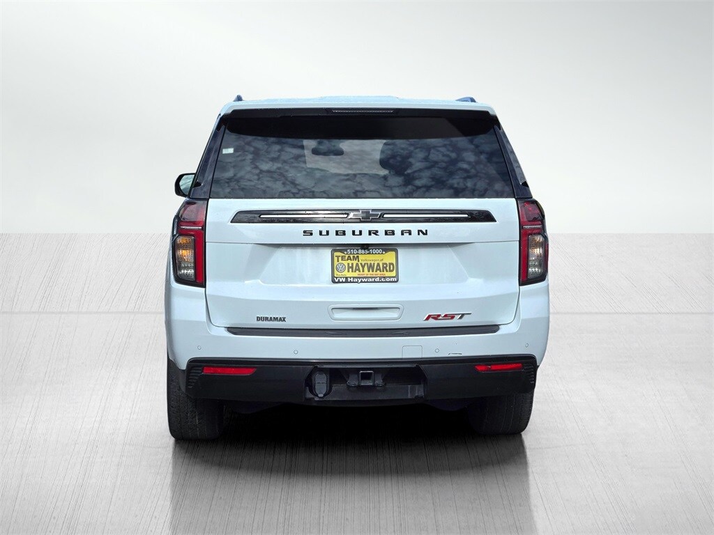 Summit White 2024 Chevrolet Suburban RST 4D Sport Utility 4WD 3.0L I6 10-Speed Automatic 1.5 kW Heater/Defrost Air System, 10-Way Power Driver & Passenger Seat Adjusters, 1st & 2nd Row Color-Keyed Carpeted Floor Mats, 2-Speed Active Electronic AutoTrac Transfer Case, 2nd Row Pwr Release 60/40 Split-Folding Bench Seat, 3rd Row 60/40 Power-Folding Split-Bench, 4-Wheel Disc Brakes, Adaptive Cruise Control, Advanced Trailering Package, Auto High-beam Headlights, Auto-Dimming Inside Rear-View Mirror, Bose 9-Speaker Stereo Audio System Feature, Brake assist, Bright Front & Rear Door Sill Plates, Bumpers: body-color, Color-Keyed Carpeting Floor Covering, Driver & Front Outboard Passenger Airbags, Driver Alert Package, Dual front side impact airbags, Dual-Pane Power Panoramic Sunroof, Emergency communication system: OnStar and Chevrolet connected services capable, Engine Block Heater, Enhanced Automatic Emergency Braking, Enhanced Driver Information Center, Extra Capacity Cooling System, Floor Console w/Storage Area, Four wheel independent suspension, Front anti-roll bar, Front dual zone A/C, Front reading lights, Fully automatic headlights, Garage door transmitter, Hands-Free Rear Power Programmable Liftgate, HD Surround Vision, Heated 2nd Row Outboard Seats, Heated door mirrors, Heated Driver & Front Passenger Seats, Heated front seats, Heated Steering Wheel, Hitch View w/Pan/Zoom Image Adjustment, Infotainment Display, Integrated Trailer Brake Controller, Lane Change Alert w/Side Blind Zone Alert, LED Daytime Running Lamps, License Plate Front Mounting Package, Luxury Package, Max Trailering Package, Memory Settings, Memory Settings For Driver, Navigation System, Occupant sensing airbag, Outside Heated Power-Adjustable Mirrors, Perforated Leather Seating Surfaces, Power driver seat, Power passenger seat, Power Tilt & Telescopic Steering Column, Power windows, Preferred Equipment Group 1SP, Premium audio system: Chevrolet Infotainment 3 Premium, Radio: Chevrolet Infotainment 3 Premium System, Rain sensing wipers, Rear anti-roll bar, Rear Cross Traffic Alert, Rear Pedestrian Alert, Rear window defroster, Remote Start, SiriusXM w/360L, Smart Trailer Integration Indicator, Speed-sensing steering, Split folding rear seat, Universal Home Remote, Variably intermittent wipers, Wheel Locks (Set of 4) (LPO), Wheels: 22" x 9" Bright Machined, Wireless Charging, Wrapped Steering Wheel.