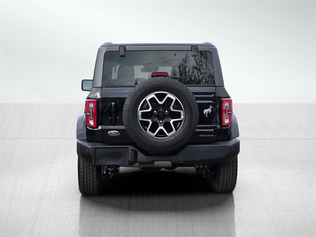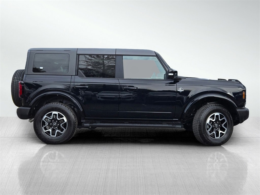 Shadow Black 2024 Ford Bronco Outer Banks 4D Sport Utility 4WD 2.3L EcoBoost I-4 10-Speed Automatic 10 Speakers w/Subwoofer, 3.73 Axle Ratio, 360-Degree Camera, 4-Wheel Disc Brakes, 7 Speakers, ABS brakes, Adaptive Cruise Control, Additional Sound Deadening, AM/FM Stereo, Auto High-beam Headlights, Auto-dimming Rear-View mirror, Brake assist, Carbonized Gray Molded-In-Color Hard Top, Compass, Connected Navigation, Delay-off headlights, Dual front impact airbags, Dual Tops w/o Headliner, Electronic Stability Control, Equipment Group 314A High/Lux Package, Evasive Steering Assist, Front anti-roll bar, Front Bucket Seats, Front License Plate Bracket, Front Parking Sensors, Front Row Top Panels Storage Bag, Front wheel independent suspension, Fully automatic headlights, Hard Top Sound Deadening Headliner, Heated door mirrors, Heated front seats, Heated Steering Wheel, Information on Demand Panel, Integrated roll-over protection, Low tire pressure warning, Navigation system: Connected Navigation, Outside temperature display, Overhead airbag, Passenger door bin, Passenger vanity mirror, Power driver seat, Power windows, Radio data system, Radio: B&O Sound System by Bang & Olufsen, Rear-Window Defroster & Washer, Sideview Mirrors, SiriusXM Radio w/360L, Split folding rear seat, Steering wheel mounted audio controls, SYNC 4, Tachometer, Tilt steering wheel, Universal Garage Door Opener, Wheels: 17" Carbonized Gray-Painted Alloy, Wireless Charging Pad. Odometer is 7172 miles below market average!