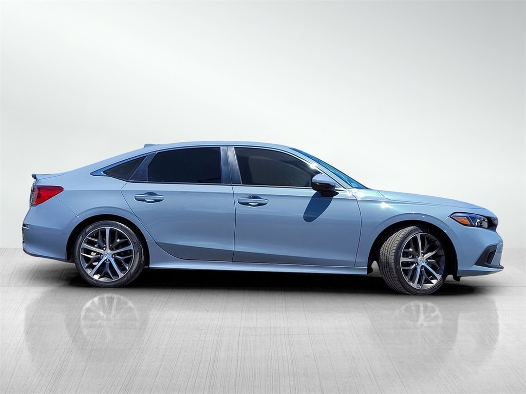 Sonic Gray Pearl 2022 Honda Civic Touring FWD CVT 1.5L I-4 DI DOHC Turbocharged Black w/Leather Seat Trim, 12 Speakers, 4-Wheel Disc Brakes, Adaptive Cruise Control: Adaptive Cruise Control (ACC) with Low-Speed Follow, Air Conditioning, AM/FM radio: SiriusXM, Brake assist, Bumpers: body-color, Driver door bin, Dual front impact airbags, Dual front side impact airbags, Front anti-roll bar, Front dual zone A/C, Front reading lights, Low tire pressure warning, Navigation system: Honda Satellite-Linked Navigation System, Outside temperature display, Overhead airbag, Passenger vanity mirror, Power door mirrors, Power moonroof, Power steering, Radio data system, Rain sensing wipers, Rear side impact airbag, Rear window defroster, Remote keyless entry, Speed control, Steering wheel mounted audio controls, Tilt steering wheel, Traction control, Wheels: 18" Alloy w/Gloss Shark Gray Inserts.