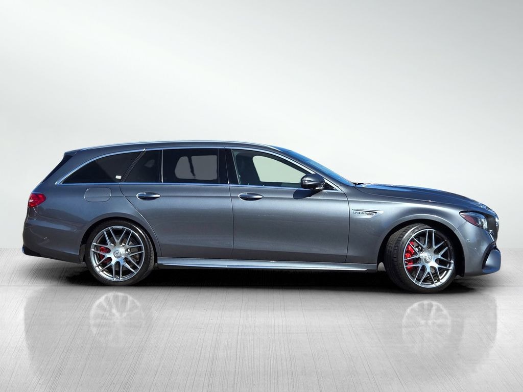 Selenite Gray Metallic 2020 Mercedes-Benz E-Class E 63 S AMG® 4MATIC® 4D Wagon 4MATIC® 4MATIC® 4.0L V8 9-Speed Automatic 4MATIC®, 13 Speakers, 4-Way Power Lumbar Support, Active Brake Assist w/Cross-Traffic Function, Active Distance Assist DISTRONIC®, Active Lane Change Assist, Active Speed Limit Assist, Active Steering Assist, Air Conditioning, AMG® Exclusive Nappa Leather Upholstery, Android Auto®, Anti-whiplash front head restraints, Apple CarPlay®, Apple CarPlay®/Android Auto®, Auto-dimming Rear-View mirror, Burmester® Surround Sound System, Delay-off headlights, Driver Assistance Package, Dual front side impact airbags, Extended Restart by Stop & Go Traffic, Four wheel independent suspension, Front anti-roll bar, Front Center Armrest, HD Radio, Heated & Ventilated Front Seats, Heated Armrest, Heated door mirrors, Heated Steering Wheel, Knee airbag, Live Traffic, Memory seat, Occupant sensing airbag, Outside temperature display, Overhead airbag, Power adjustable rear head restraints, Power driver seat, Power moonroof, Power steering, Power windows, PRE-SAFE® PLUS Rear End Collision Protection, PRESAFE® Impulse Side, Radio data system, Radio: COMAND® Navigation, Rain sensing wipers, Rapid Heating Functionality for Front Seats, Rear window wiper, Route Based Speed Adaptation, SiriusXM Radio, Smartphone Integration, Speed Limit Assist, Sport steering wheel, Steering wheel mounted audio controls, Steering Wheel Shift Paddles, Telescoping steering wheel, Traction control, Trip computer, Warmth & Comfort Package, Weather band radio, Wheels: 20" AMG® Twin 5-Spoke w/Grey Accents.