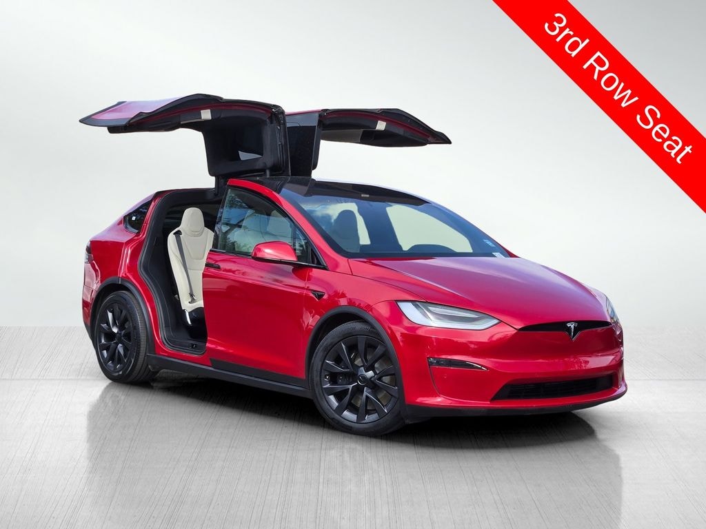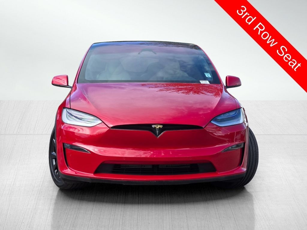 Red Multi-Coat 2022 Tesla Model X Base 4D Sport Utility AWD Electric Motor 1-Speed Automatic 22 Speakers, 4-Wheel Disc Brakes, 6 Seat Interior, Adaptive suspension, Air Conditioning, Auto-dimming Rear-View mirror, Automatic temperature control, Bumpers: body-color, Driver door bin, Driver vanity mirror, Exterior Parking Camera Rear, Front anti-roll bar, Front Bucket Seats, Front dual zone A/C, Garage door transmitter: Homelink, Genuine wood dashboard insert, Genuine wood door panel insert, Heated door mirrors, Heated front seats, Illuminated entry, Memory seat, Navigation System, Outside temperature display, Power passenger seat, Power windows, Radio data system, Rear air conditioning, Rear anti-roll bar, Rear reading lights, Rear window defroster, Speed control, Speed-sensing steering, Steering wheel mounted A/C controls, Steering wheel mounted audio controls, Trip computer, Ventilated front seats, Wheels: 20" Cyberstream.